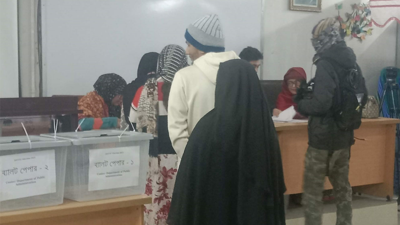 সরেজমিন শহীদ সাজিদ ভবন, রফিক ভবন, বিজ্ঞান অনুষদ ও সামাজিক বিজ্ঞান অনুষদ ভবন ঘুরে দেখা গেছে, প্রতিটি কেন্দ্রে ভোটারদের দীর্ঘ সারি। এর মধ্যে নারী শিক্ষার্থীদের উপস্থিতিও ছিল চোখে পড়ার মতো। ভোট দিতে আসা শিক্ষার্থীরা জানান, নির্বাচন নিয়ে আগে কিছুটা সংশয় থাকলেও এখন পর্যন্ত পরিবেশ সুষ্ঠু ও নিরপেক্ষ রয়েছে। ভোট দিতে পেরে ভালো লাগছে।’