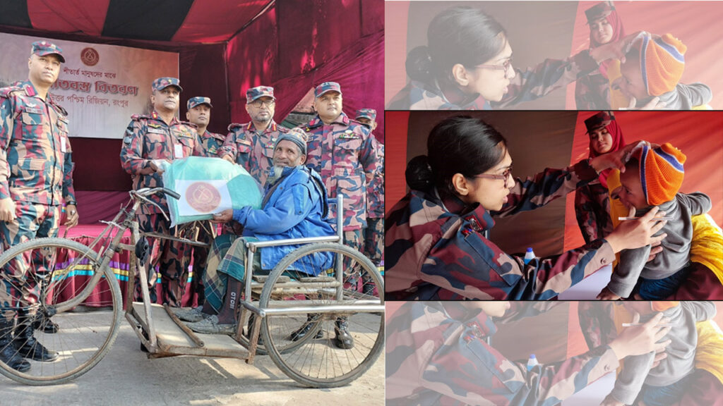 রংপুর ৫১ বিজিবি ব্যাটালিয়নের ব্যবস্থাপনায় সীমান্তবর্তী এলাকার প্রায় ৫ শতাধিক দরিদ্র-হতদরিদ্র পরিবারের মাঝে কম্বল বিতরণ করা হয়। একই তিন শতাধিক নারী-পুরুষ ও শিশুদের বিনা মূল্যে চিকিৎসাসেবা এবং প্রয়োজনীয় ওষুধ প্রদান করা হয়।
