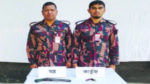 এ সময় পরিত্যক্ত অবস্থায় ওই কাটা পিস্তল ও কার্তুজ উদ্ধার করা হয়। উদ্ধারকৃত অস্ত্র ও গোলাবারুদ আইনি প্রক্রিয়া শেষে সংশ্লিষ্ট থানায় মামলা দায়ের করে পুলিশের কাছে হস্তান্তরের কার্যক্রম প্রক্রিয়াধীন রয়েছে।
