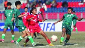 নেপালের বিপক্ষে বুধবার (৪ ফেব্রুয়ারি) পোখারার রঙ্গশালা স্টেডিয়ামে ম্যাচের শুরু থেকেই আক্রমণাত্মক ছিল বাংলাদেশের মেয়েরা। তৃতীয় মিনিটেই মামনি চাকমার নেওয়া কর্নার থেকে নিখুঁত হেডে গোল করে দলকে এগিয়ে দেন প্রতিমা মুন্ডা। দ্রুত গোল হজমের পর নেপাল রক্ষণে মনোযোগ বাড়ালেও বিরতির আগে আবার আঘাত হানে বাংলাদেশ। যোগ করা সময়ে সরাসরি ফ্রি-কিক থেকে ব্যবধান দ্বিগুণ করেন আলপি আক্তার।