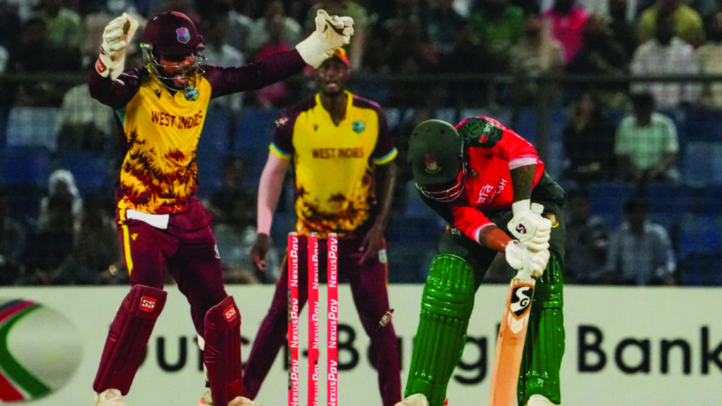 পরে মুস্তাফিজুর রহমান তুলে নেন হাফ সেঞ্চুরিয়ান হোপকে। ৩৬ বলে তার ব্যাট থেকে আসে ৫৫ রান। এরপর আর তেমন কেউ মাঠে দাঁড়াতে পারেননি। পরে ক্যারিবীয়রা দেড়শর কাছাকাছি গেছে রোমারিও শেফার্ডের ১৬ বলে ১৩ আর রস্টন চেজের ১৫ বলে অপরাজিত ১৭ রানে।