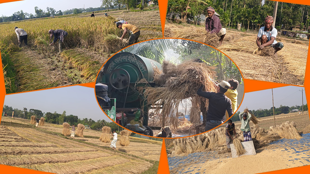 লালমনিরহাটের পাঁচ উপজেলা- সদর, আদিতমারী, কালীগঞ্জ, হাতীবান্ধা ও পাটগ্রাম-এ এখন আমন ধান কাটার ব্যস্ততা চূড়ান্ত পর্যায়ে। হেমন্ত শেষে শীতের আগমনী ছোঁয়ায় মাঠের পর মাঠ জুড়ে দুলছে সোনালি ধান। কৃষকের ক্লান্ত চোখে ফুটে উঠছে নতুন ধানের ঘ্রাণে খুশির হাসি। ধান ঘরে তুলতে তুলতে ফিরে আসছে আশার আলো, কিন্তু উৎসবের উচ্ছ্বাস নেই আগের মতো।
