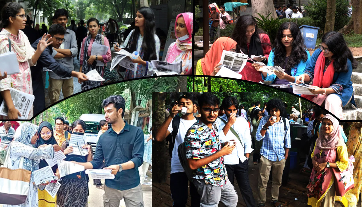 রবিবার ঢাকা বিশ্ববিদ্যালয় এলাকা দেখা যায়, নির্বাচনী প্রচারণার শেষ দিনে প্রার্থীরা ভোটারদের কাছে গিয়ে ভোট চাইছেন। এ সময় ভোটাররাও আগ্রহ সহকারে প্রার্থীদের ইশতেহার ও কথা শুনছিলেন। দিনভর প্রার্থী ও ভোটারদের আলাপচারিতায় মুখরিত ছিল পুরো বিশ্ববিদ্যালয় এলাকা।