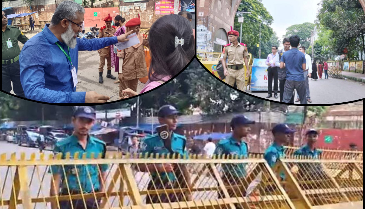 মঙ্গলবার (৯ সেপ্টেম্বর) সকাল সাড়ে ৯টার দিকে রাজধানীর শাহবাগ মোড় ঘুরে দেখা যায়, বিশ্ববিদ্যালয়ের প্রবেশপথে দেওয়া হয়েছে ব্যারিকেড। রয়েছেন আইন-শৃংখলা বাহিনীর বিপুলসংখ্যক সদস্য।