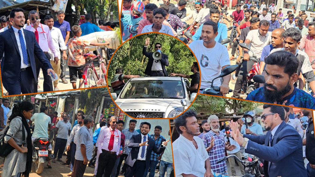 শোভাযাত্রায় অংশ নেওয়া তরুণেরা এই স্বতন্ত্র প্রার্থীকে নিয়ে বিভিন্ন শ্লোগান দেন। শোভাযাত্রার মধ্য দিয়ে প্রার্থী তার উন্নয়ন ভাবনা ভোটারদের সামনে তুলে ধরেন। এ সময় তিনি এলাকাবাসীর সঙ্গে কুশল বিনিময় করেন এবং এই সংসদীয় আসনের জন্য তার আগামীর ভিশন সম্পর্কে স্থানীয় বাজারগুলোতে সংক্ষিপ্ত বক্তব্য রাখেন।