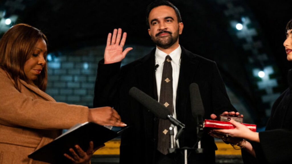 ইংরেজি নতুন বছরের প্রথম দিন নিউইয়র্কের প্রথম মুসলিম মেয়র হিসেবে পবিত্র কোরআন হাতে শপথ নিয়েছেন তরুণ ডেমোক্র্যাট নেতা জোহরান মামদানি। আজ বৃহস্পতিবার (১ জানুয়ারি) আল জাজিরা, নিউইয়র্ক টাইমস ও অন্যান্য গণমাধ্যম এ তথ্য জানিয়েছে।