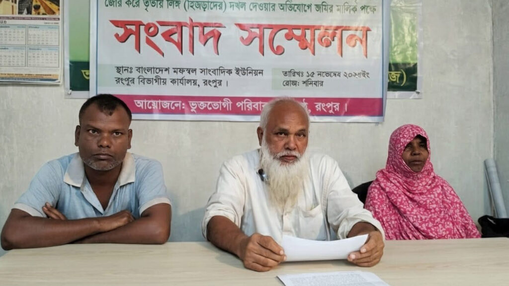 সংবাদ সম্মেলনে ওয়াজেদ আলী সরকার জানান, সিএস খতিয়ান অনুযায়ী রংপুর নগরীর নীলকন্ঠ এলাকায় দুটি দাগে মোট ৩১ শতক জমির মালিক ছিলেন চন্দ্র মোহন নামে এক ব্যক্তি। তিনি ওই জমির খাজনা চালাতে ব্যর্থ হলে তা জোতদারের কাছে হস্তান্তর করেন এবং পরবর্তীতে অজিত কুমার সেন গুপ্ত নামে এক ব্যক্তি সেই জমি পত্তন নেন। এরপর অজিত কুমার সেন গুপ্ত ১৯৮৫ সালের ৩০ জুন হাবিবুর রহমানের কাছে ওই ৩১ শতক জমিটি বিক্রি করে দেন। হাবিবুর রহমান ভোগদখল অবস্থায় ১৯৮৮ সালের ২৩ নভেম্বর ওই জমি মোজাম্মেল হকের কাছে বিক্রি করেন। ২০২৩ সালের ২৮ মে মোজাম্মেল হক আরএস রেকর্ডের জাবেদা নকল উত্তোলন করতে গিয়ে দেখেন জমিটি খাস দেখানো হয়েছে।
