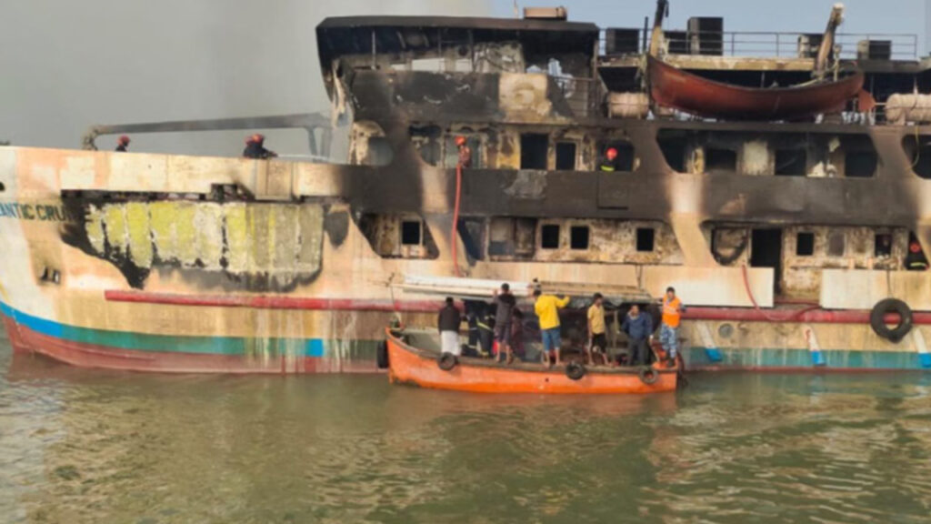 কক্সবাজার শহরের নুনিয়াছড়া বিআইডব্লিটিএ ঘাটে নোঙর করা সেন্টমার্টিনগামী জাহাজে অগ্নিকাণ্ড ঘটেছে। এতে এক কর্মচারী নিহত হয়েছেন। আজ শনিবার (২৭ ডিসেম্বর) সকাল সাড়ে ৬টার দিকে বাকখালী নদীতে ‘দ্য আটলান্টিক ক্রুজ’ নামে ওই জাহাজটিতে এই আগুন লাগে।