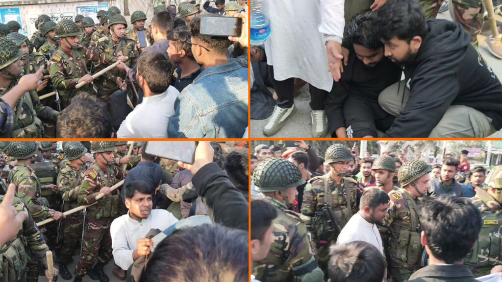 পঞ্চগড়ে বাংলাদেশপন্থী শিক্ষার্থীদের আয়োজনে শহীদ ওসমান হাদীর হত্যাকারিদের বিচারসহ ৪ দফা দাবিতে বিক্ষোভে সেনাবাহিনীর লাঠিচার্জ ও বাধা দেয়ার অভিযোগ উঠেছে। এ সময় আন্দোলনকারী ছাত্রদের মধ্যে অন্তত ২৩ জন আহত হয়ে হাসপাতালে চিকিৎসা নিচ্ছেন।