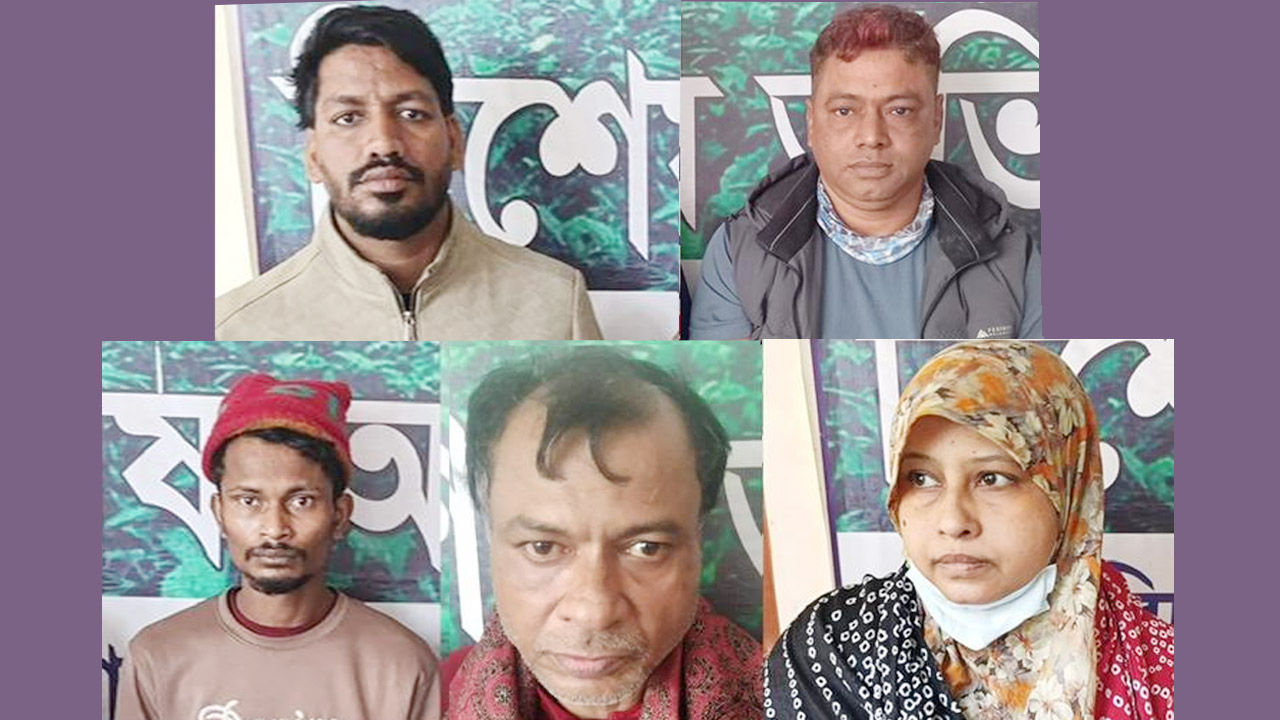 আটককৃতরা হলেন,- দেবীদ্বার পৌর এলাকার ছোট আলমপুর গ্রামের সাহেব আলী মেম্বার বাড়ির ইসমাইল হোসেনের ছেলে এবং দেবীদ্বার পৌর স্বেচ্ছাসেবক দলের সাবেক সাংগঠনিক সম্পাদক বিল্লাল হোসেন বিল্লু (৩৫) ও তার ছোট ভাই মো. জালাল উদ্দিন পিন্টু (২৮), একই গ্রামের মৃত আব্দুর রাজ্জাক (মনু মেম্বার)’র ছেলে মো. মহসীন মিয়া (৫২) ও তার স্ত্রী আমেনা আক্তার (৪৫) এবং সুবিল ইউনিয়নের ওয়াহেদপুর গ্রামের হুমায়ুন মিয়ার ছেলে মো. পাভেল মিয়া (২৩)।