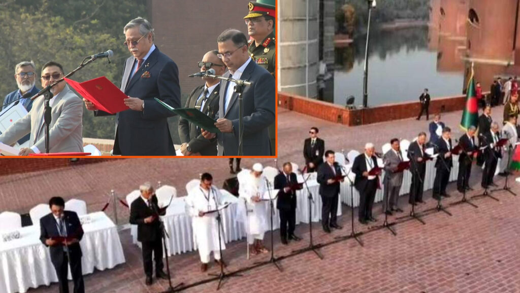 জাতীয় সংসদ ভবনের দক্ষিণ প্লাজায় আজ মঙ্গলবার (১৭ ফেব্রুয়ারি) বিকাল ৪টার পর রাষ্ট্রপতি মো. সাহাবুদ্দিন তাদের শপথ পড়ান। এসময় নবনির্বাচিত সংসদ সদস্য, অন্তর্বর্তীকালীন সরকারের প্রতিনিধি এবং আমন্ত্রিত অতিথিরা উপস্থিত ছিলেন। পাশাপাশি উপস্থিত ছিলেন ভারত, পাকিস্তান, নেপালসহ দক্ষিণ এশিয়ার বিভিন্ন দেশের নেতারাও।