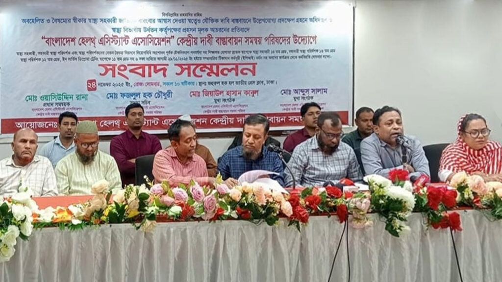 ফের কর্মবিরতির ডাক দিয়েছে স্বাস্থ্য সহকারীদের সংগঠন বাংলাদেশ হেলথ অ্যাসিস্ট্যান্ট অ্যাসোসিয়েশন। ৬ দফা দাবি বাস্তবায়নে বৃহস্পতিবারের মধ্যে সরকার প্রজ্ঞাপন জারি না করলে শনিবার থেকে ঢাকার কেন্দ্রীয় শহীদ মিনারে অনির্দিষ্টকালের শান্তিপূর্ণ অবস্থান কর্মসূচি শুরু করার ঘোষণা দিয়েছে সংগঠনটির কেন্দ্রীয় সমন্বয় পরিষদ।