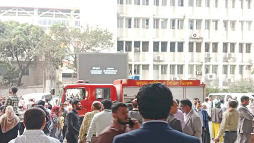 মুহূর্তের মধ্যে ধোঁয়ায় চারপাশ আচ্ছন্ন হয়ে পড়ে। ফায়ার হুইসেলের শব্দে আতঙ্ক বিরাজ করছে। ঘটনার পর ১ নম্বর ভবনের কর্মকর্তা-কর্মচারীরা মাঠে নেমে নিরাপদ স্থানে অবস্থান নিয়েছেন। এ ভবনে জনপ্রশাসন মন্ত্রণালয় এবং মন্ত্রিপরিষদ বিভাগ রয়েছে।