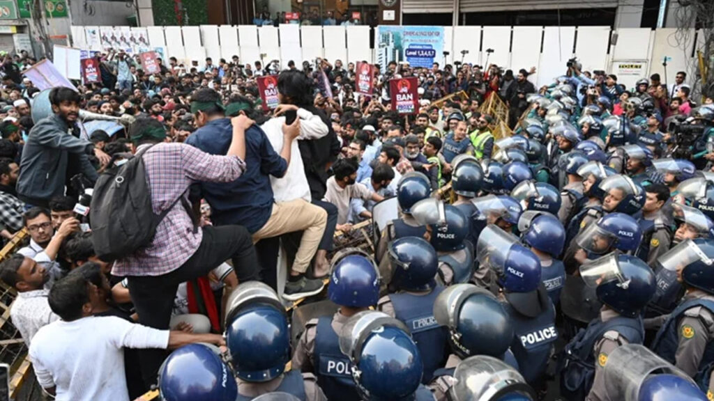 রাজধানীতে জুলাই ঐক্যের ‘মার্চ টু ইন্ডিয়ান হাইকমিশন’ কর্মসূচিতে বাধা দিয়েছে পুলিশ। কর্মসূচি ঘিরে প্রগতি সরণিতে যান চলাচল বন্ধ হয়ে পড়ে।