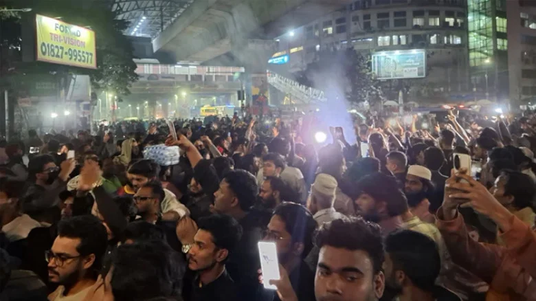 বৃহস্পতিবার রাতে ঢাকা বিশ্ববিদ্যালয়, শাহবাগসহ রাজধানীর বিভিন্ন মোড়ে জড়ো হয়ে বিক্ষোভ করছেন ছাত্র-জনতা।