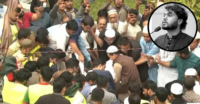 এর আগে জাতীয় সংসদ ভবনের দক্ষিণ প্লাজায় শরিফ ওসমান হাদির জানাজা শেষে বিকেল ৩ টায় হাদির মরদেহ বহনকারী অ্যাম্বুলেন্স কবরস্থানে পৌঁছায়। দুপুর ২টা ৩০ মিনিটে জাতীয় সংসদ ভবনের দক্ষিণ প্লাজায় শরিফ ওসমান হাদির জানাজা পড়ান হাদির বড় ভাই আবু বকর সিদ্দিক।
