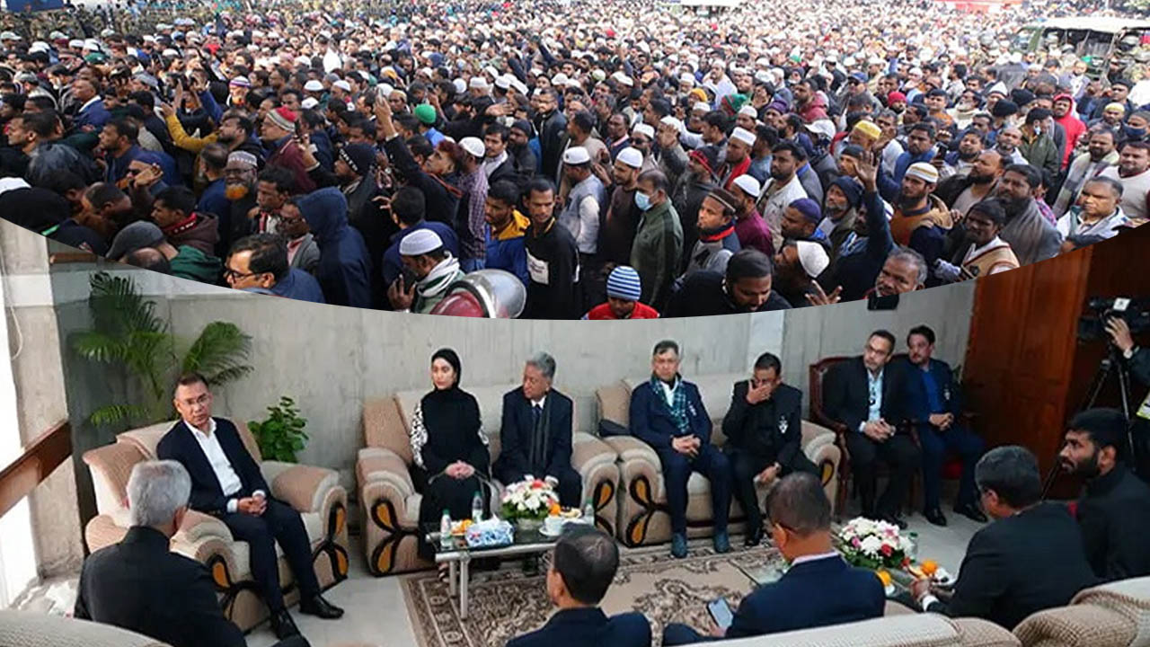বুধবার (৩১ ডিসেম্বর) দুপুর ৩টায় রাজধানীর মানিক মিয়া অ্যাভিনিউয়ে তারা জানাজায় যোগ দেন। জানাজায় অংশ নেওয়া কূটনীতিকদের মধ্যে ছিলেন যুক্তরাষ্ট্রের ভারপ্রাপ্ত রাষ্ট্রদূত মেগান বোল্ডিন, ব্রিটিশ হাইকমিশনার সারাহ কুক, চীনের রাষ্ট্রদূত ইয়াও ওয়েন, এবং ইউরোপীয় ইউনিয়নের রাষ্ট্রদূত মাইকেল মিলারসহ অন্তত ৩২ জন কূটনীতিক ও প্রতিনিধি।
