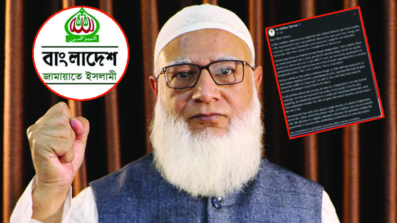তিনি আরও লেখেন, ‘আমাদের আন্দোলন কখনো একটি নির্বাচন নিয়ে হয়নি। গণতান্ত্রিক সংস্কৃতি শক্তিশালী করা, নাগরিকদের অধিকার রক্ষা করা এবং একটি ন্যায়নিষ্ঠ ও জবাবদিহিতা রাষ্ট্র গড়ে তোলাই আমাদের উদ্দেশ্য। জামায়াত একটি নীতিবান, দায়িত্বশীল ও শান্তিপূর্ণ বিরোধী দল হিসেবে সংসদে ভূমিকা পালন করবে এবং সরকারের জবাবদিহি নিশ্চিত করে জাতীয় অগ্রগতিতে গঠনমূলক অবদান রাখবে। নীতিগত ও শান্তিপূর্ণ রাজনীতির প্রতি আমাদের অঙ্গীকার অটল।’