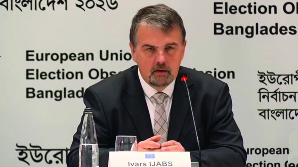 ত্রয়োদশ জাতীয় সংসদ নির্বাচন বিশ্বাসযোগ্যভাবে অনুষ্ঠিত হয়েছে জানিয়ে ইইউ পর্যবেক্ষক দলের প্রধান ইভার্স ইজাবস বলেছেন, ‘২০০৮ সালের পর এবারের নির্বাচন সবচেয়ে শান্তিপূর্ণ, গ্রহণযোগ্য ও প্রতিযোগিতামূলক ছিল। এই নির্বাচন বাংলাদেশের ভবিষ্যৎ নির্বাচনের জন্য নতুন বেঞ্চমার্ক।’