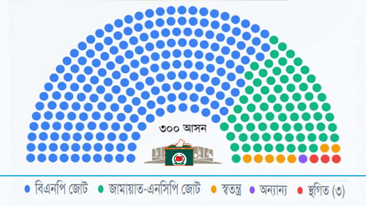 নির্বাচনে বিএনপি আসন পেয়েছে ২০৯টি। জামায়াতে ইসলামী পেয়েছে ৬৮টি। এনসিপি ৬টি। বাংলাদেশ খেলাফত মজলিস ২টি। ইসলামী আন্দোলন বাংলাদেশ আসন পেয়েছে ১টি। গণঅধিকার পরিষদ পেয়েছে ১টি। বাংলাদেশ জাতীয় পার্টি (বিজেপি) ও খেলাফত মজলিস পেয়েছে ১টি করে আসন। অন্যদিকে জাতীয় পার্টিসহ ৪১টি দল কোনো আসনই পায়নি।