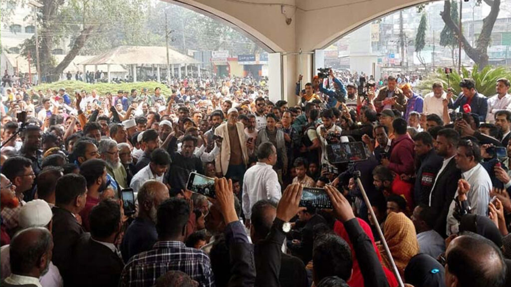 রোববার (১৫ ফেব্রুয়ারি) বেলা ১টা থেকে বিকেল সাড়ে ৩টা পর্যন্ত তারা জেলা প্রশাসকের কার্যালয়ের সামনে অবস্থান নিয়ে বিক্ষোভ মিছিল করেন। এ সময় আখতার হোসেন ও জেলা প্রশাসককে ‘ভোট চোর’ উল্লেখ করে স্লোগান দেন নেতাকর্মীরা।