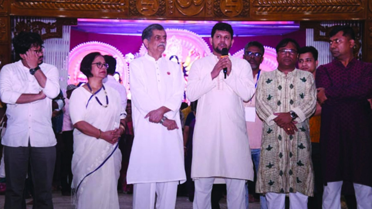 সনাতন ধর্মাবলম্বীদের শারদীয় শুভেচ্ছা জানিয়ে তিনি বলেন, ‘সনাতন ধর্মাবলম্বীদের ঐতিহ্য আমাদের ইতিহাসের অংশ। বাংলাদেশের ইতিহাস হিন্দু-মুসলিম ঐক্যের মাধ্যমে লড়াইয়ের ইতিহাস। গতবারের তুলনায় এবারের দুর্গাপূজা বর্ণিল ও উৎসবমুখর পরিবেশে উদযাপিত হচ্ছে।’