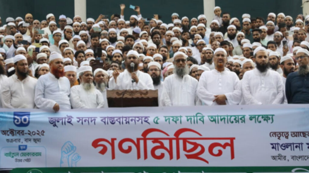 সরকারের উদ্দেশ্যে মাওলানা মামুনুল হক বলেন, দেশের মানুষ জানতে চায়—দেশ এখন বাহাত্তরের ধারায় চলবে, নাকি বৈষম্যবিরোধী চেতনার ধারায় পরিচালিত হবে?