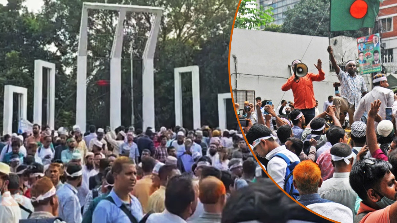 ‘২০ পার্সেন্ট বাড়ি ভাড়া, দিতে হবে দিয়ে দাও’, ‘অবিলম্বে প্রজ্ঞাপন, দিতে হবে দিয়ে দাও’, ‘১৫০০ টাকা চিকিৎসা ভাতা, দিতে হবে দিয়ে দাও’সহ নানা স্লোগানে মুখরিত রাজধানীর কেন্দ্রীয় শহীদ মিনার।
