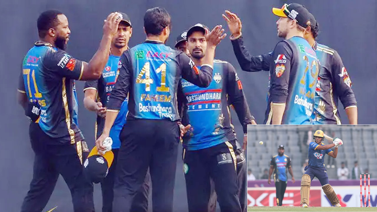 ১৮২ রানের টার্গেটে ব্যাংটিংয়ে নেমে দলীয় ৫৩ রানে ৪ উইকেট হারিয়ে চাপে পড়ে ঢাকা। এরপর দ্রুতই আরও জোড়া উইকেট হারিয়ে ম্যাচ থেকে অনেকটা ছিটকে যায় তারা। সেখান থেকে ঢাকাকে লড়াইয়ে ফেরান সাইফুদ্দিন। ৩০ বলে তার ৫৮ রানের ঝড়ো ইনিংস কেবল ব্যবধানই কমিয়েছে। শেষ পর্যন্ত হার নিয়ে মাঠ ছাড়ে ঢাকা।