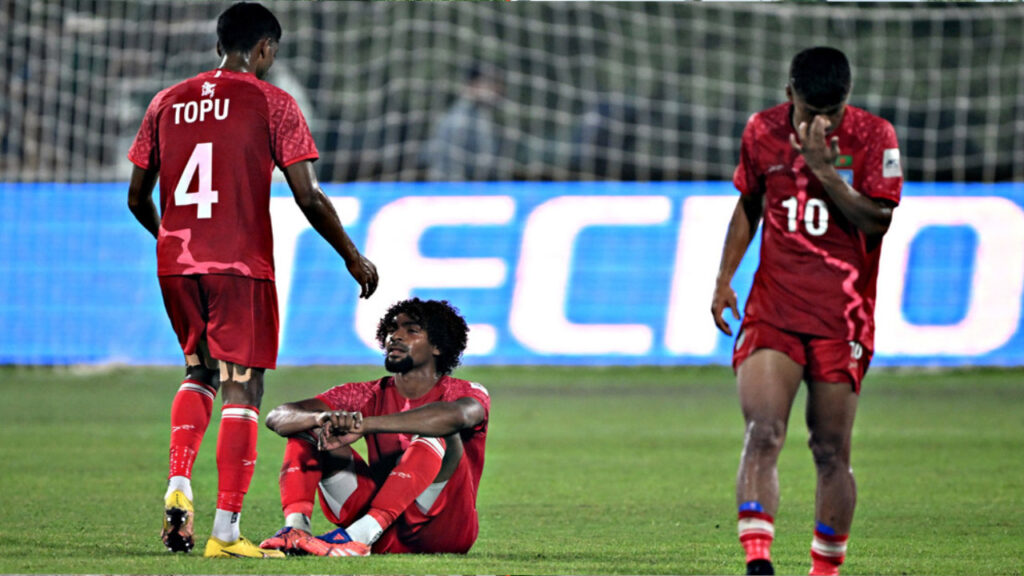 বৃহস্পতিবার (৯ অক্টোবর) রাতে ঢাকা জাতীয় স্টেডিয়ামে ৪-৩ গোলে হেরে এশিয়ান কাপের স্বপ্নভঙ্গ হল হামজাদের। বাংলাদেশ হেরে বসেছে নিজেদের ভুলেই। তাও একটি নয়,দুটি নয়, তিন তিনটে ভুলে। যার শেষটা হয়েছে একেবারে শেষ মুহূর্তে। তখন শূন্য দৃষ্টি নিয়ে হামজা চৌধুরীর অভিব্যক্তিটাই বলে দিচ্ছিল সব। এমন এক ম্যাচে হারের পর এমন কিংকর্তব্যবিমূঢ় হয়ে বসে থাকা ছাড়া আর কীইবা করার থাকে?