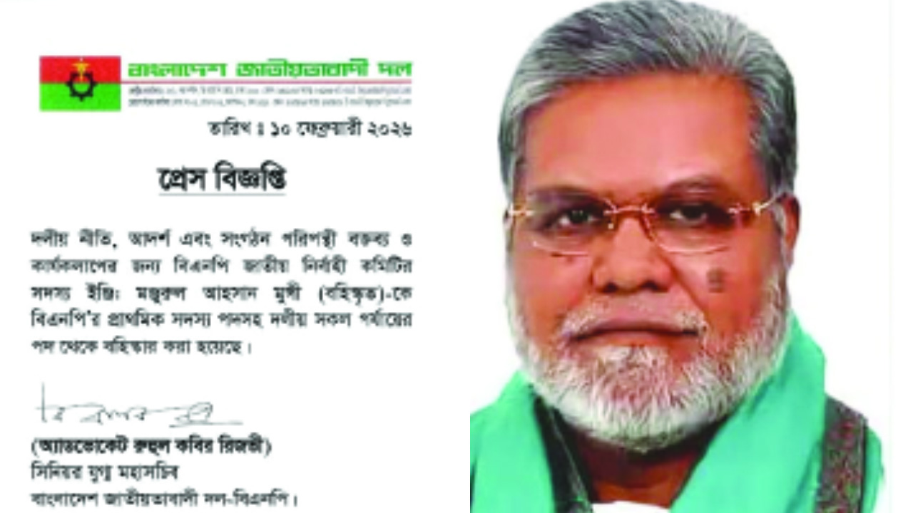 এতে বলা হয়, ‘দলীয় নীতি, আদর্শ এবং সংগঠন পরিপন্থী বক্তব্য ও কার্যকলাপের জন্য বিএনপি জাতীয় নির্বাহী কমিটির সদস্য ইঞ্জি. মঞ্জুরুল আহসান মুন্সী (বহিষ্কৃত)-কে বিএনপির প্রাথমিক সদস্য পদসহ দলীয় সকল পর্যায়ের পদ থেকে বহিষ্কার করা হয়েছে।’